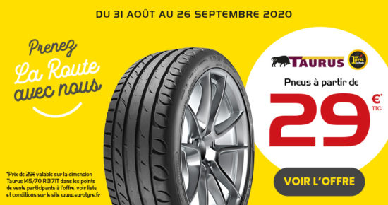 Du 31 Aout au 26 Septembre 2020, profitez de notre offre sur les pneumatiques 1er Prix Taurus à partir de […]
