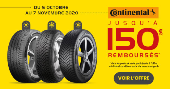Du 05 Octobre au 07 Novembre 2020, jusqu’à 150€* remboursés sur les pneus Continental été, hiver ou toutes saisons. Détails […]